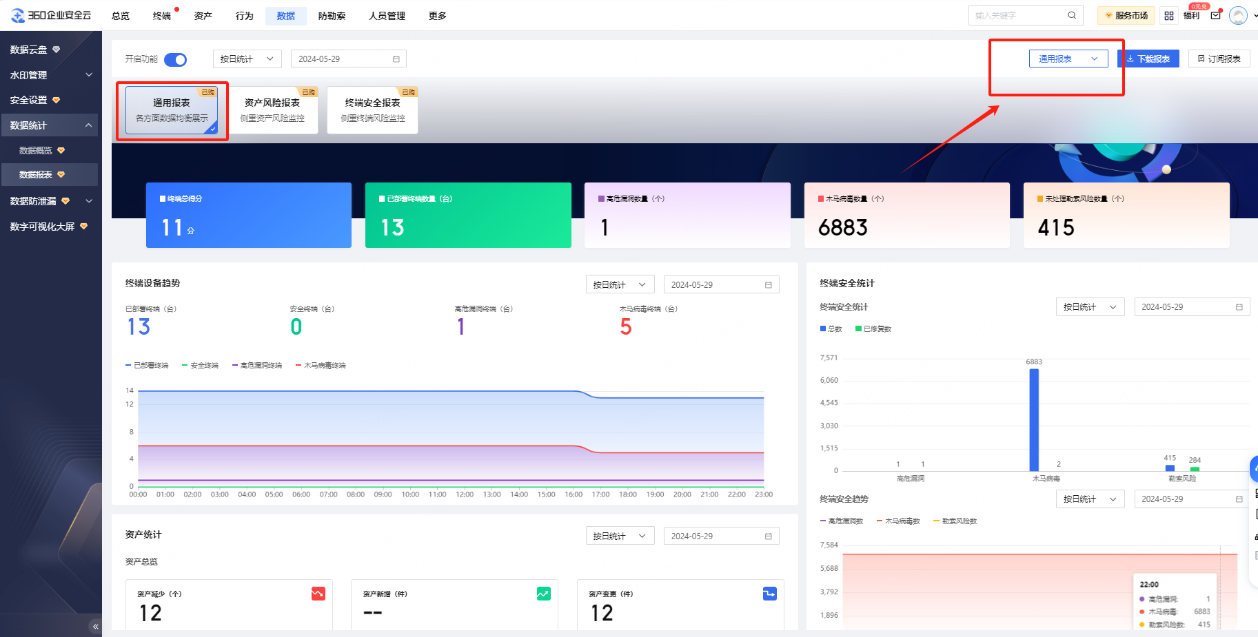 通用模板,各方面数据均衡展示,掌握整体终端数据动态