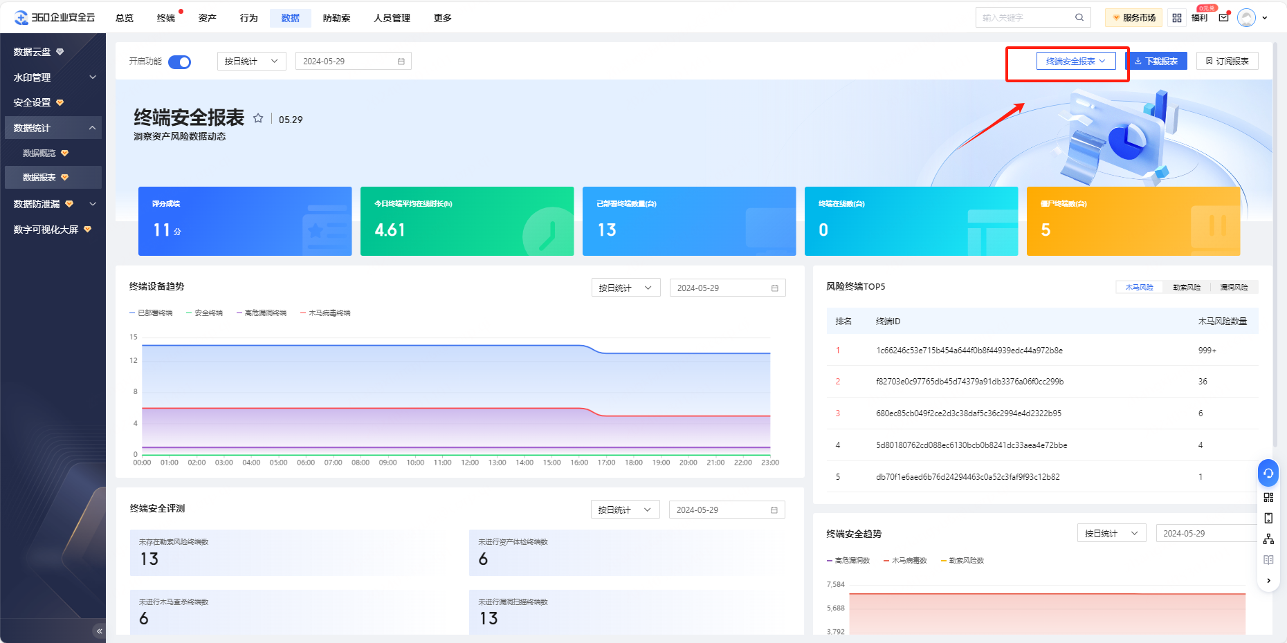 终端安全模板,侧重终端风险监控数据统计